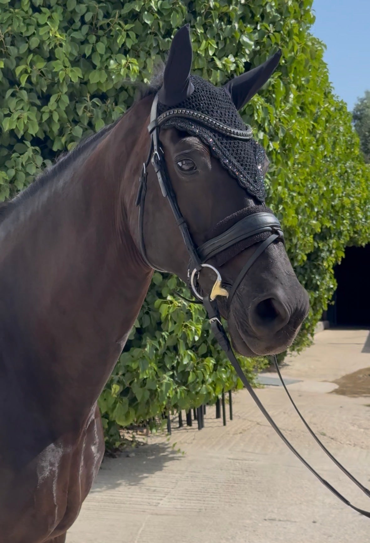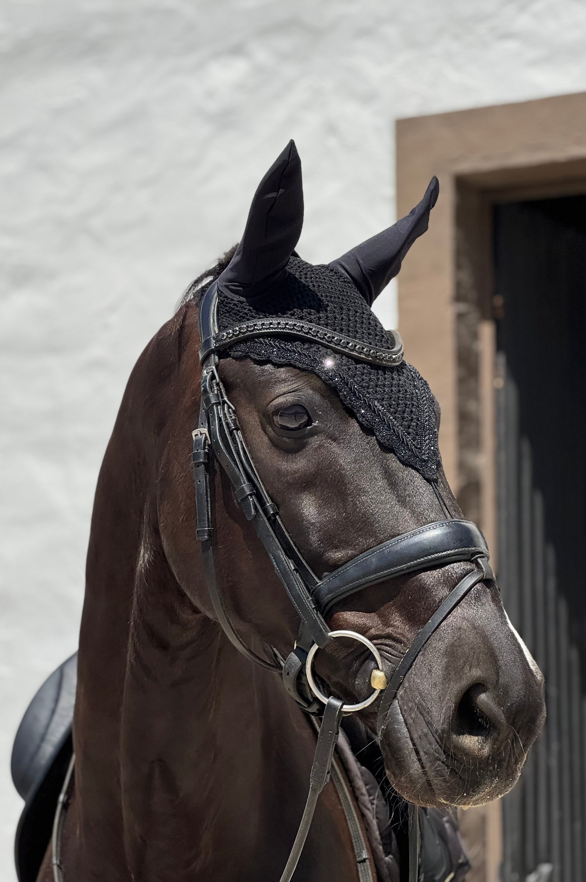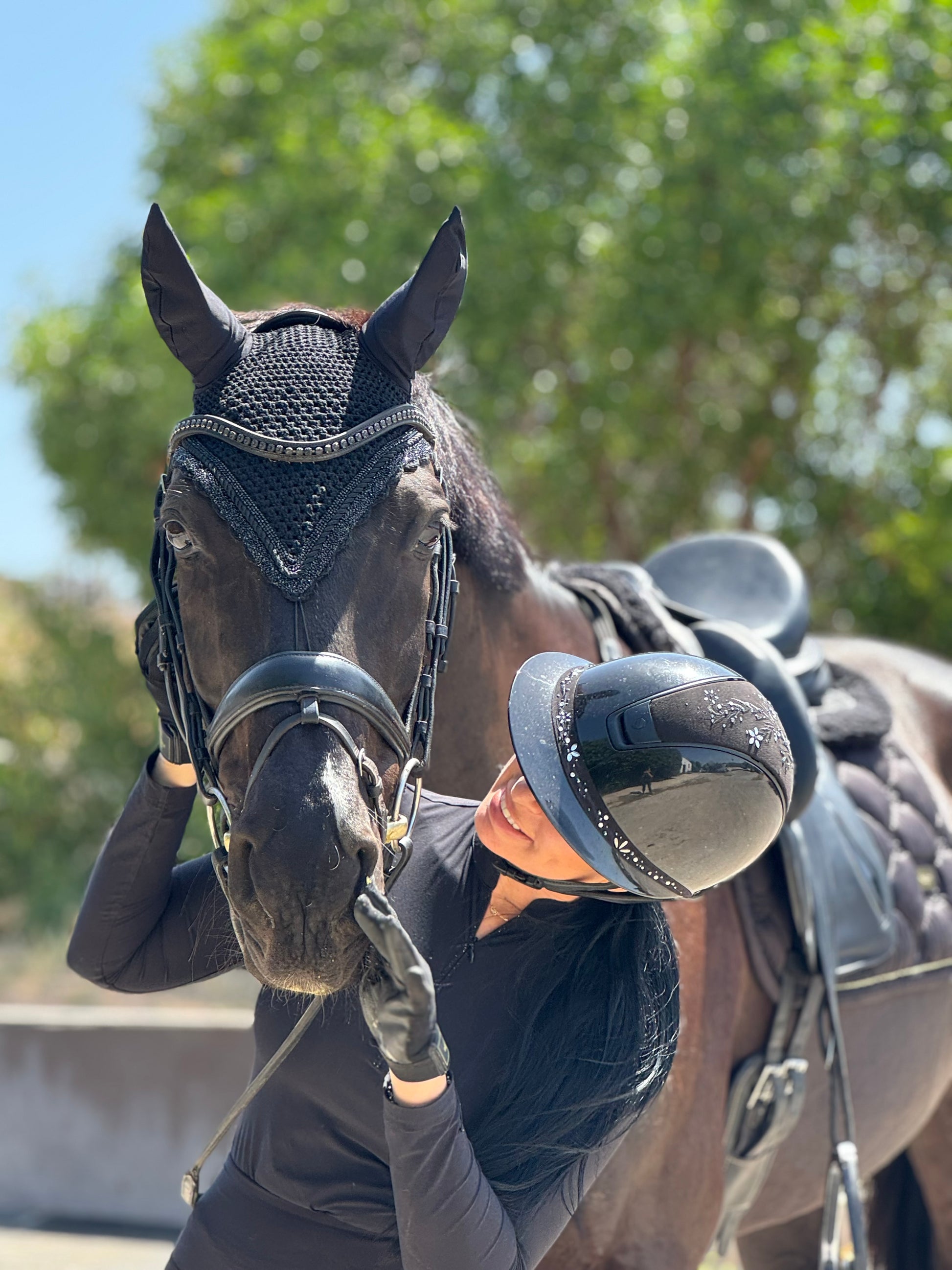 The MIDNIGHT bonnet: an all-black piece from our design collection “made to order” blending style and comfort for your horse 🖤